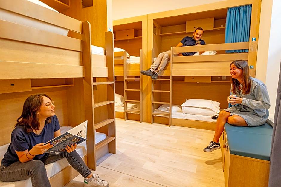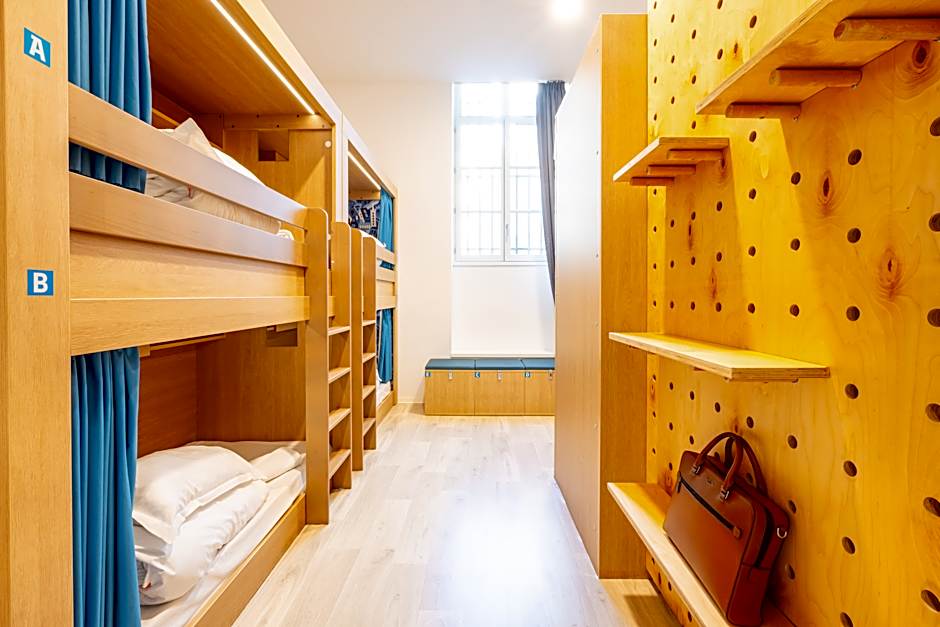 1 Bed in 6 bed female room with shared bathroom is 215 square feet and includes either bunk beds or a single bed 80-130 width.